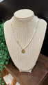 This simple yet elegant piece is the perfect way to elevate any outfit. With a unique chain alternating between gold and freshwater pearls the necklace features a small circular gold hammered pendent.