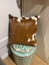 Square cowhide and leather cushion. Includes insert, cowhide covers one side and on the reverse side is a gorgeous buttery soft leather.
