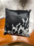 Square cowhide and leather cushion. Includes insert, cowhide covers one side and on the reverse side is a gorgeous buttery soft leather.