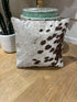 Square cowhide and leather cushion. Includes insert, cowhide covers one side and on the reverse side is a gorgeous buttery soft leather.