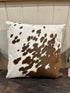 Square cowhide and leather cushion. Includes insert, cowhide covers one side and on the reverse side is a gorgeous buttery soft leather.