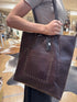 Chocolate Leather Gold stud Handbag.Small Front Pocket.