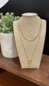 Elevate your everyday style with this elegant layered gold necklace. Designed for effortless sophistication, this piece features two delicate chains — a shorter paperclip-style chain and a longer fine chain adorned with a stunning gem-studded cross charm suspended from a textured gold ring. Adjustable length.