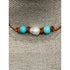 36 cm length short ; two turquoise stones, and one freshwater pearl, adorn the quality leather; choker / necklace