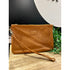 Large clutches. Approximately 24cm x 17cm. Includes detachable strap. Available in tan, black and brown.