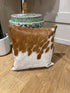 Square cowhide and leather cushion. Includes insert, cowhide covers one side and on the reverse side is a gorgeous buttery soft leather.