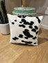 Square cowhide and leather cushion. Includes insert, cowhide covers one side and on the reverse side is a gorgeous buttery soft leather.